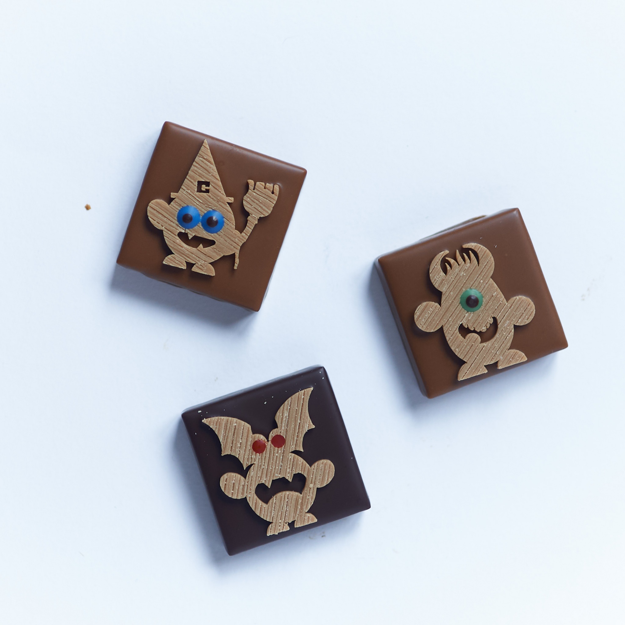 Une délicieuse bouchée carrée sur le thème d’Halloween, mariant un gianduja fondant aux noisettes du Piémont à un enrobage de chocolat noir ou au lait. Une alliance parfaite entre intensité, douceur et gourmandise, à savourer pour célébrer Halloween avec élégance.