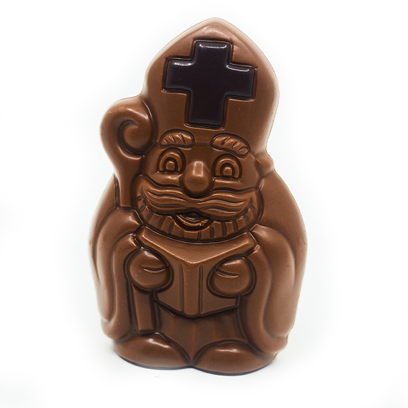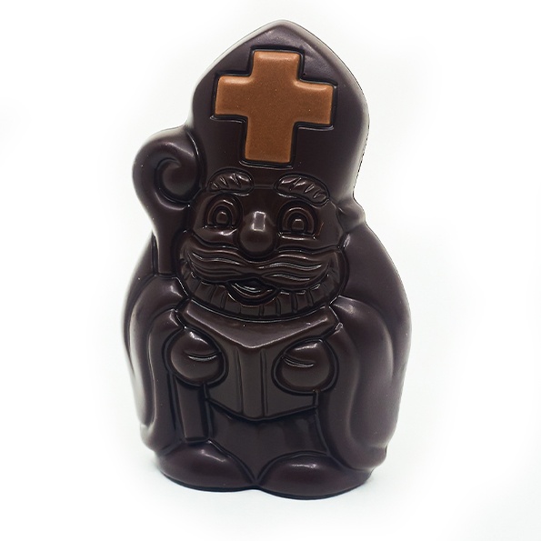 Moulage en chocolat au lait et chocolat noir, spécialement dédié à la célébration de Saint Nicolas. Un délice à savourer ou à offrir pour marquer cette tradition gourmande.
