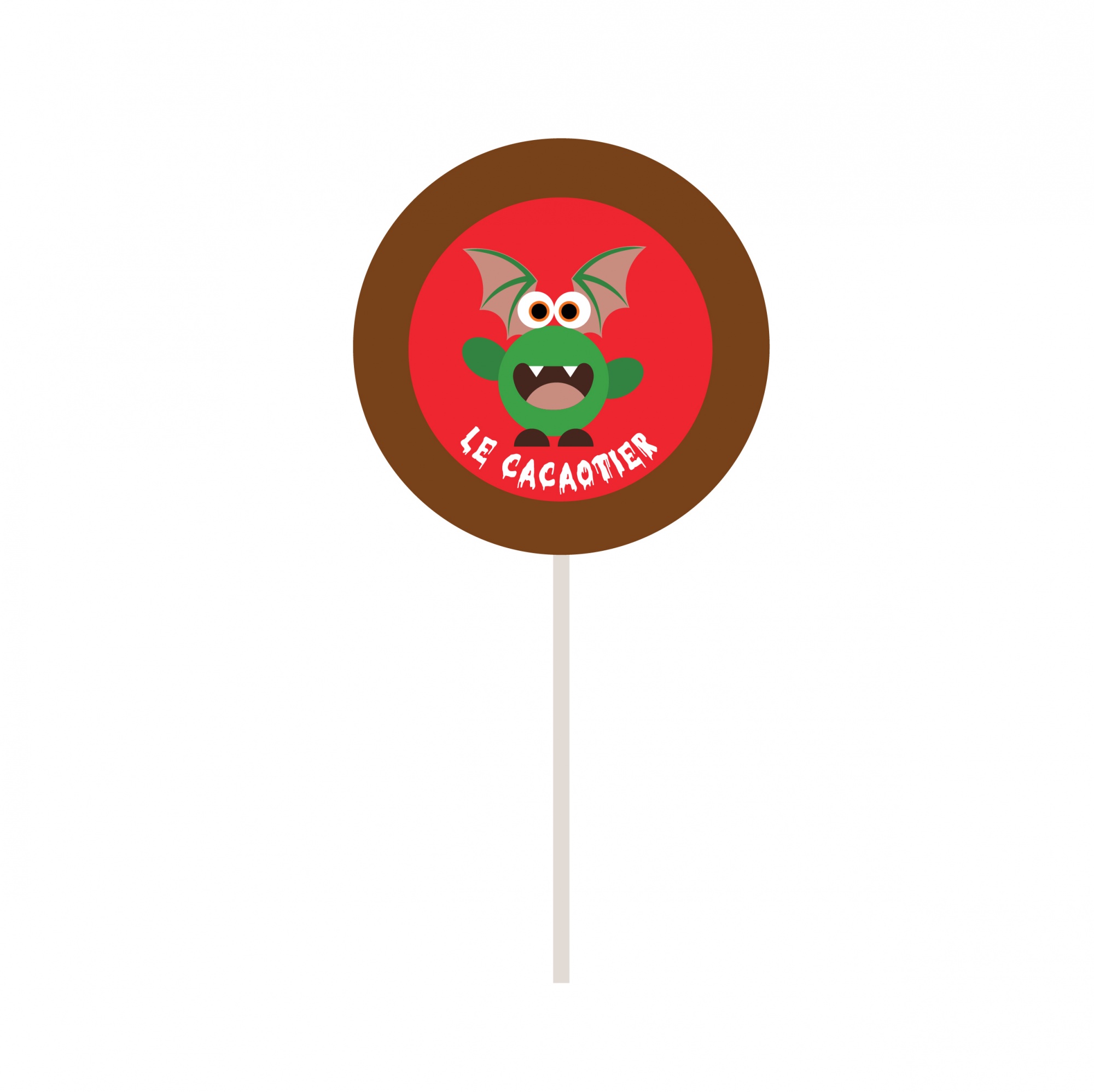 Chaque sucette est décorée d’un autocollant d’Halloween, pour une touche ludique et gourmande.
